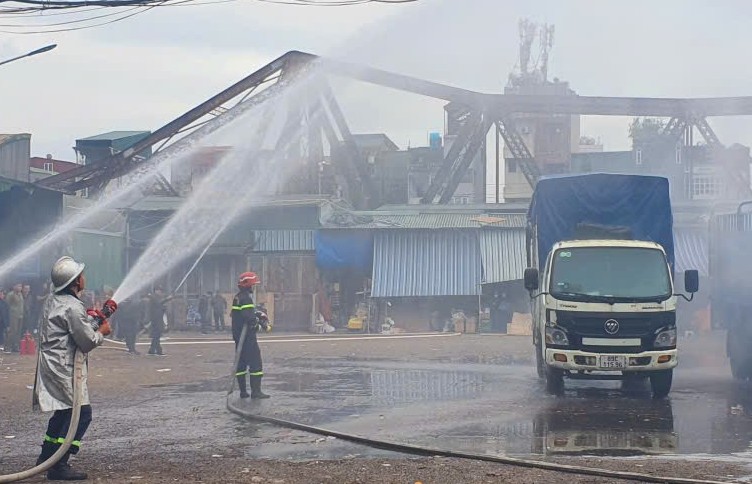 TTTĐ - Sáng 24/10, Phòng Cảnh sát phòng cháy chữa cháy và cứu nạn cứu hộ, Công an TP Hà Nội tổ chức diễn tập tại chợ Long Biên (phường Hồng Hà, Hà Nội).